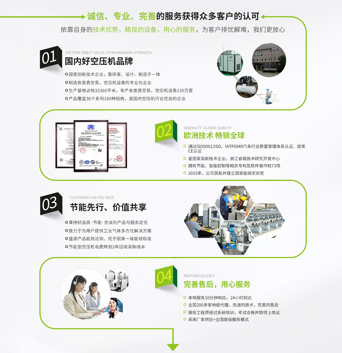 浙江盛源空壓機制造有限公司是一家研究制造無油真空泵系列、新能源電動空壓機、空氣壓縮機設備、器材、永磁伺服電機、工業(yè)投資等多元化經營的大型企業(yè),是國家高新技術企業(yè),浙江省級技術研究開發(fā)中心。